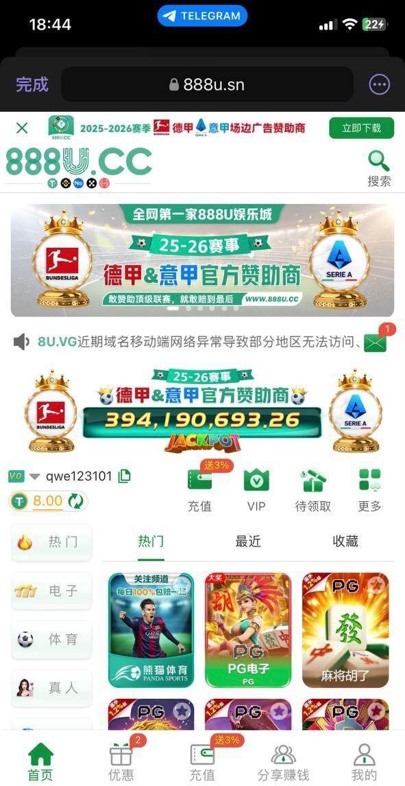 关注频道截图立即送8u,8倍水,无游戏限制,注册链接:888u.am