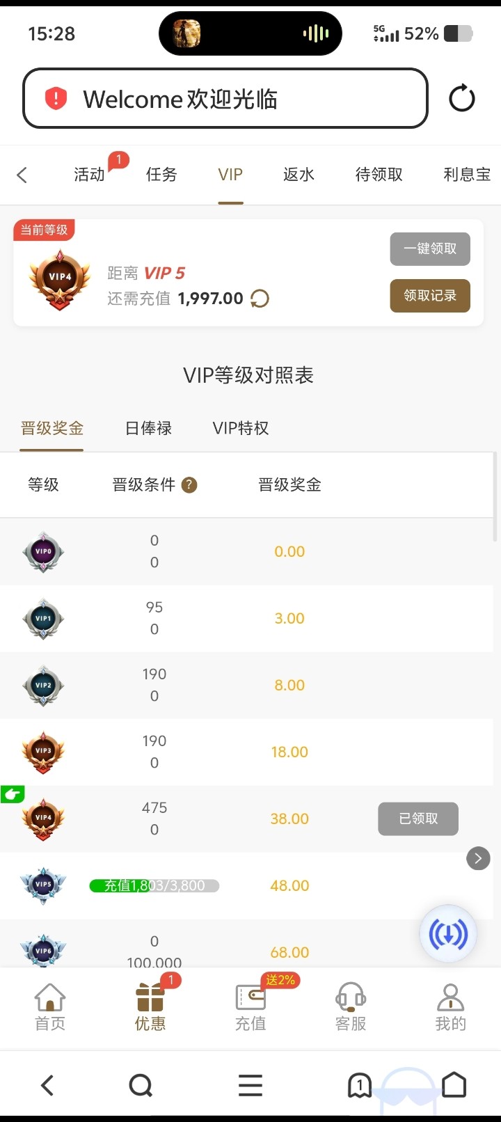 vip等级和奖励都改版重置了,我领到了60多,我是半年没存过了,这个平台概率黑之前正常存打都被罚过流水有账号的都去看看