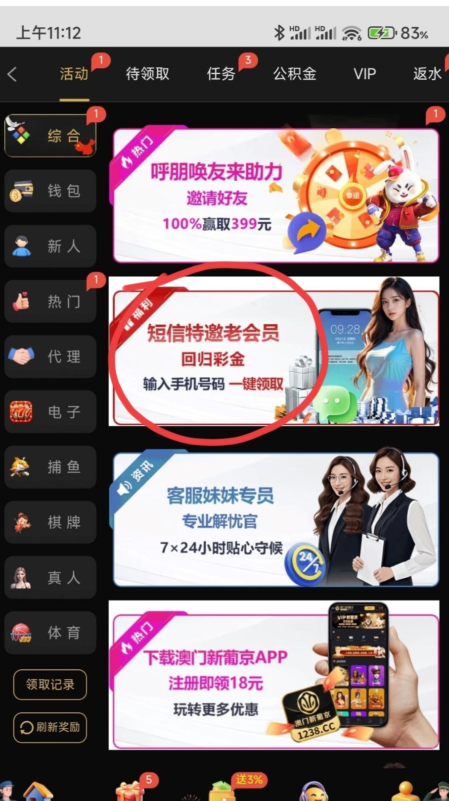 之前是特邀短信自助送9,现在又出了一个短信回归,之前领过9的估计这个也可以领。