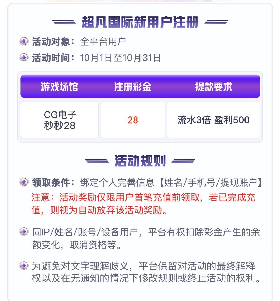 【超凡国际】— 注册送28 白菜