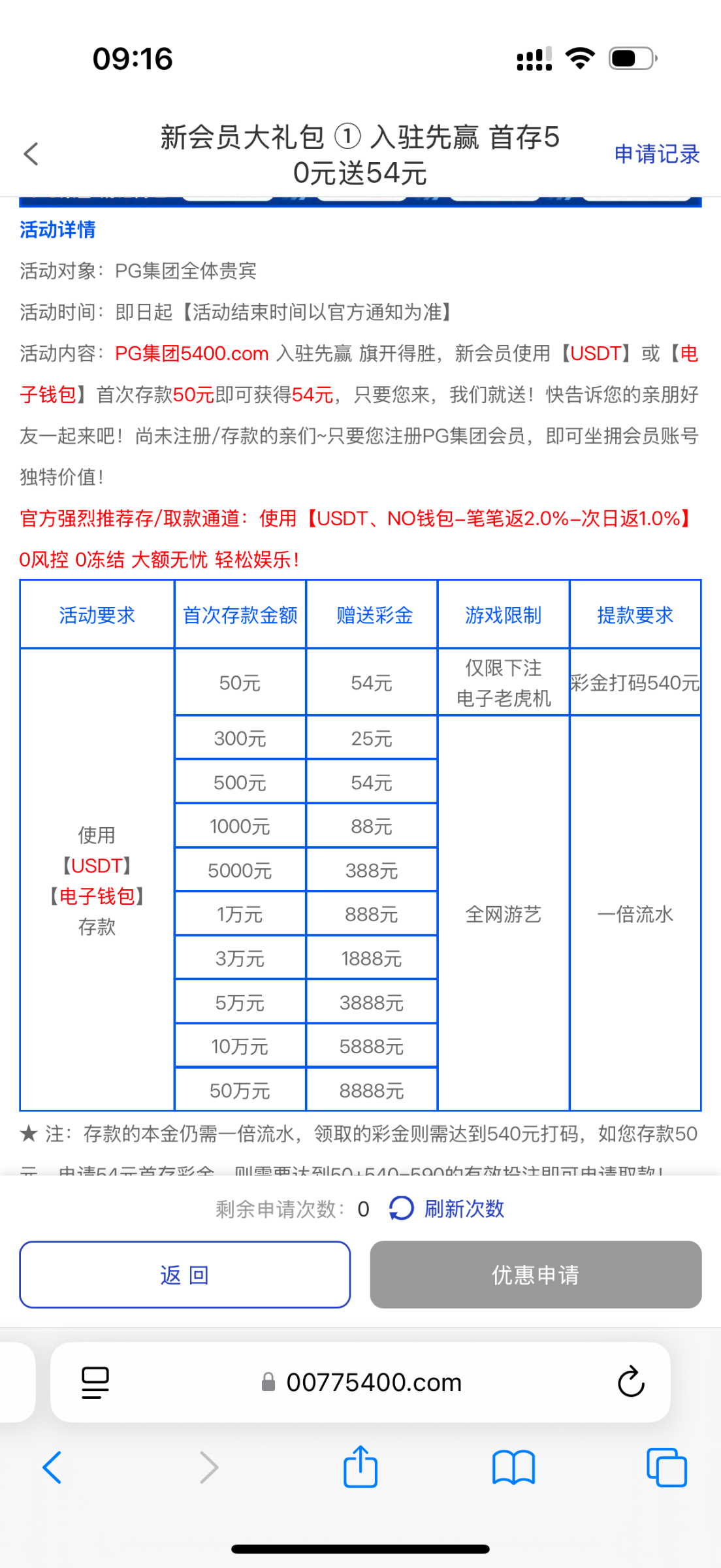 新人首存50+54,打够流水就能提,相当于以小博大想打的去试试,详情看活动介绍,玩过的注意一下,第二天还有免费红包雨和摇钱树。